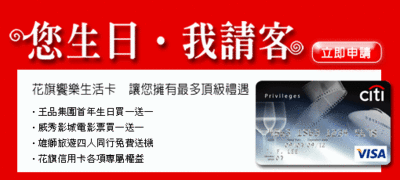 (刷花旗饗樂生活卡加贈VIP禮物乙份)
