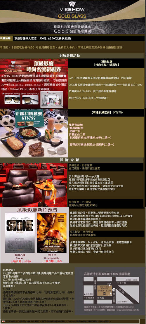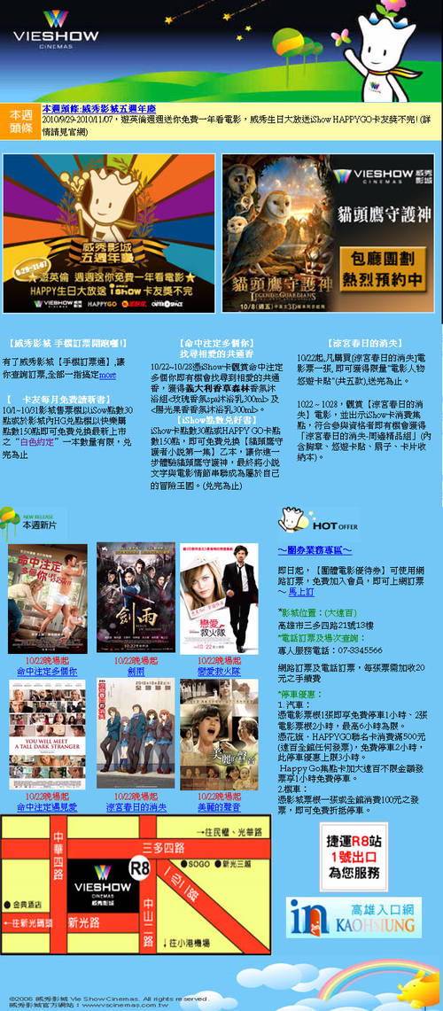 新片快遞及場次時間表10/22~10/31