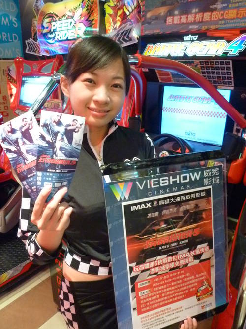 威秀影城為帶動觀賞電影的樂趣生活,將於高雄大遠百威秀影城陳列二台賽車機,自4/25~5/1每日 19:00~21:00週末假日4/30~5/1 14:00~16:00加賽一場,凡至高雄大遠百威秀影城觀賞電影的消費者憑電影票根即可感受挑戰賽車乙次的樂趣,憑電影「雷神索爾」數位3D立體電影票根還可享兩次挑戰機會,每日挑戰之前三名消費者即可獲邀5/4 19:00數位IMAX玩命關頭5電影特映會,提前感受世界上最極致身歷其境的臨場體驗以及影像極大化逼真視聽震撼體驗,活動期間統計秒數前三名還可獲得湯姆熊代幣遊樂兌換禮券。