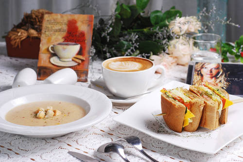 主廚湯品 or 牛奶 + 全麥潛艇堡 or 可頌 (夾 煙燻雞肉 or 德式香腸 or 洋芋泥沙拉) + 飲料
