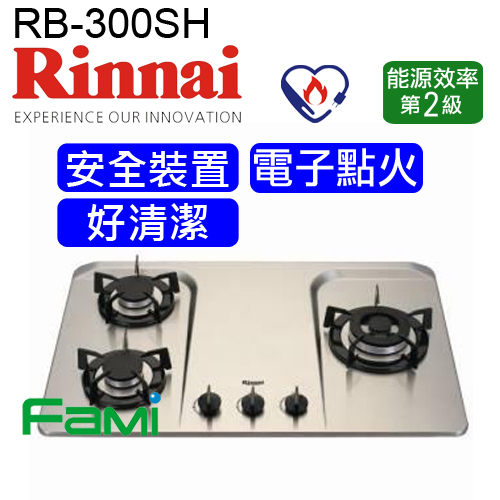 【fami】彰化 林內瓦斯爐 檯面式 瓦斯爐 RB-300SH (31B) 檯面式三口瓦斯爐(不鏽鋼)