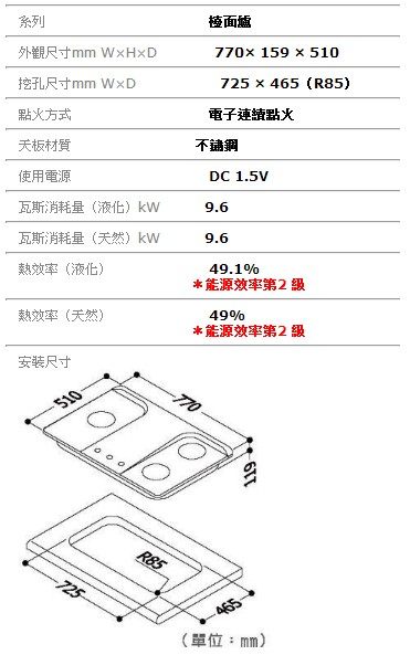 防漏好清潔、熄火安全裝置、電子連續點火、不鏽鋼天板