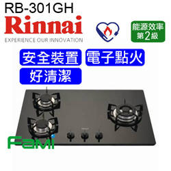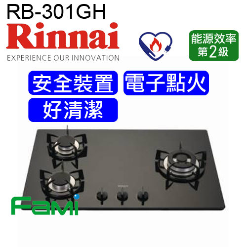 【fami】彰化 林內瓦斯爐 檯面式 瓦斯爐 RB-301GH (31GB) 玻璃檯面式三口瓦斯爐(黑/白)