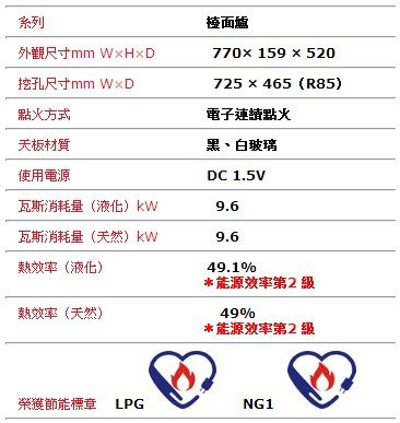 防漏好清潔、熄火安全裝置、電子連續點火、高鋼性強化安全玻璃天板