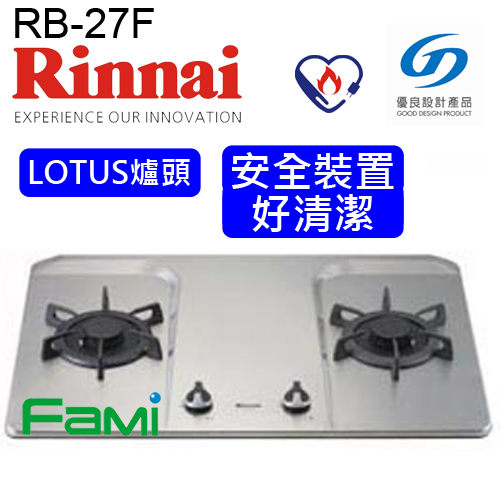 【fami】彰化 林內瓦斯爐 檯面式 瓦斯爐 RB 27F LOTUS 檯面二口瓦斯爐