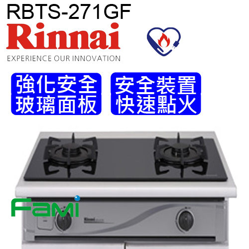 【fami】彰化 林內瓦斯爐 嵌入式 玻璃 瓦斯爐 RBTS 271 GF 崁入式Lotus二口玻璃爐(黑色強化玻璃)