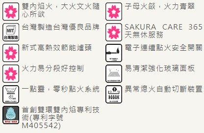 雙內焰火、子母火燄、新式高熱效節能爐頭、異常熄火自動切斷裝置、首創雙環雙內焰專利技術