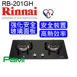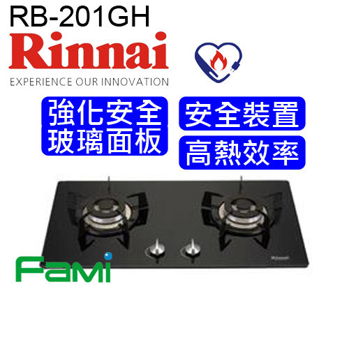 【fami】彰化 林內瓦斯爐 檯面瓦斯爐 RB-201GH (28GF) 快潔防漏二口檯面爐(黑色強化玻璃)