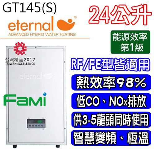 彰化廚具 Eternal伊特能智慧變頻熱水器 GT145(S) 24公升 大出水量 適用飯店、民宿、豪宅!! 一級能效!!