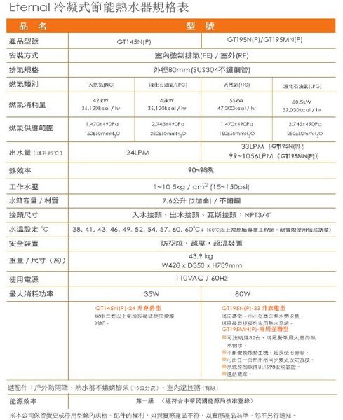 彰化廚具 Eternal伊特能智慧變頻熱水器 GT195(S) 33公升 大出水量 適用飯店、民宿、豪宅!! 一級能效!!