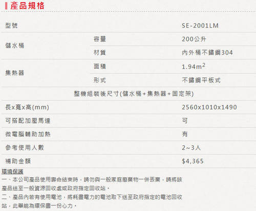 彰化太陽櫻花太陽能熱水器 SE 2001 LM 太陽能熱水器 環保節能 政府補助!
