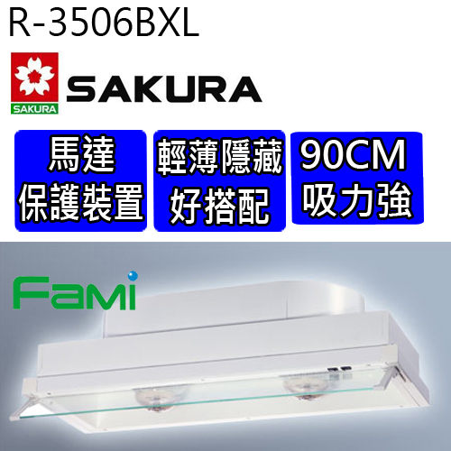 彰化 櫻花除油煙機 隱藏式除油煙機 R 3506 BXL (90CM) 全隱藏式除油煙機