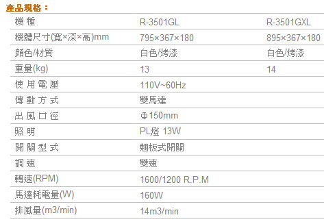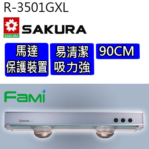 彰化 櫻花除油煙機 隱藏式除油煙機 R 3501GXL (90CM) 隱藏式除油煙機