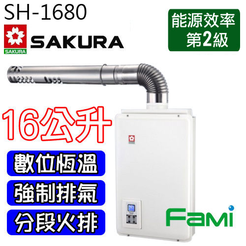 彰化 櫻花熱水器 強制排氣瓦斯熱水器 SH-1680 16L數位恆溫熱水器
