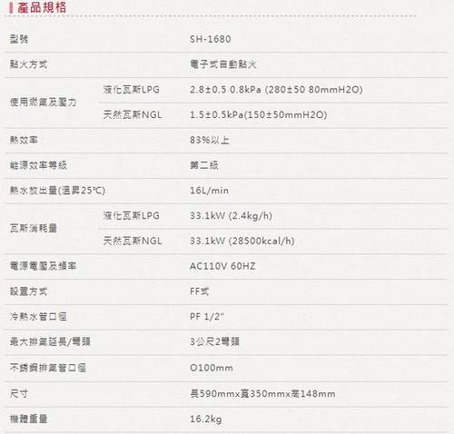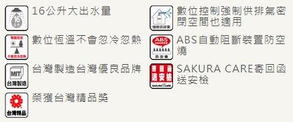 16公升大出水量、數位恆溫、強制排氣、防空燒、浴室與密閉空間也可安裝