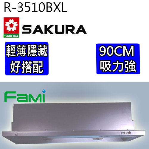 櫻花隱藏式除油煙機 R 3510 BXL (90CM) 超薄型除油煙機