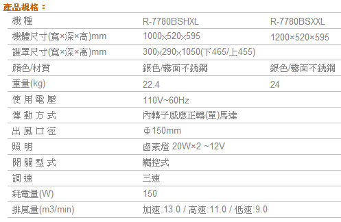 櫻花除油煙機 漏斗式除油煙機 R 7780 BSXXL (120CM) 歐化除油煙機