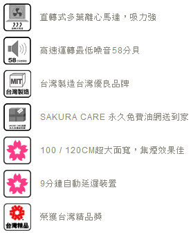 直轉式多葉離心馬達,吸力強、低噪音、集煙效果佳、榮獲台灣精品獎