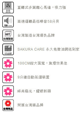 直轉式多葉離心馬達,吸力強、低噪音、集煙效果佳、時尚極光、榮獲台灣精品獎