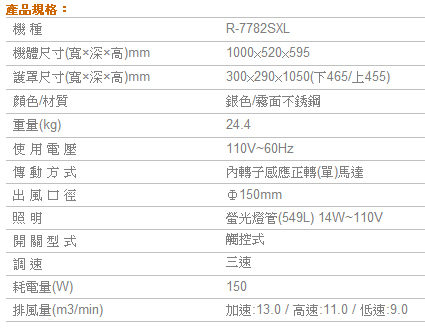 彰化 櫻花除油煙機 歐化式除油煙機R 7782 SHXL (100CM) 歐化除油煙機