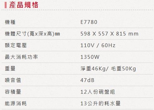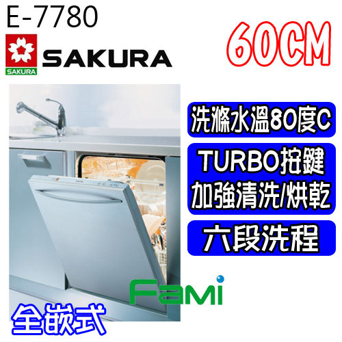彰化 櫻花 嵌入式 洗碗機 E 7780 (60CM) 全嵌式 洗碗機 (不附門板)