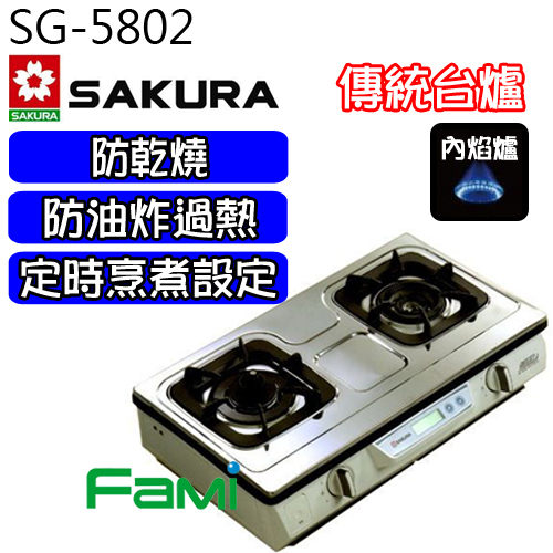 彰化 櫻花瓦斯爐 傳統爐 台爐 SG 5802 雙內焰 防乾燒 安全爐