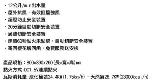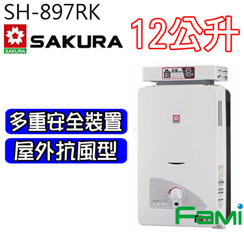 櫻花熱水器 屋外型瓦斯熱水器 SH 897 RK 12L 加強抗風型 熱水器