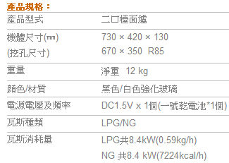 櫻花瓦斯爐 檯面式 瓦斯爐 G 2511 KG 二口玻璃節能檯面爐 (黑/白)