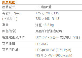 【fami】彰化 林內瓦斯爐 檯面式 瓦斯爐 RB-301GH (31GB) 玻璃檯面式三口瓦斯爐(黑/白)