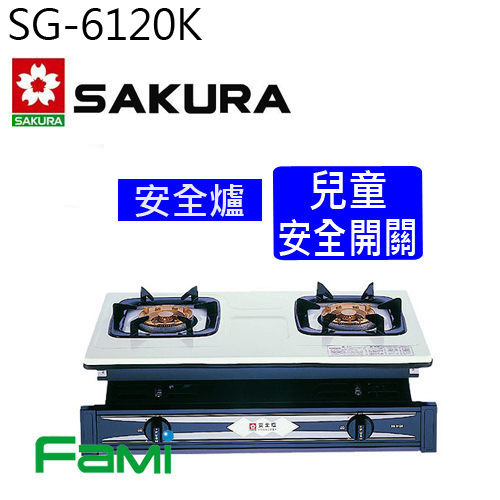彰化 櫻花瓦斯爐 崁入式瓦斯爐 SG 6120 K 兩口崁入安全爐 (不鏽鋼/琺瑯)
