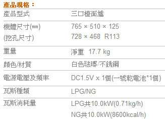 【fami】彰化 林內瓦斯爐 檯面式 瓦斯爐 RB-301GH (31GB) 玻璃檯面式三口瓦斯爐(黑/白)