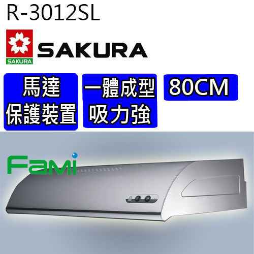 彰化 櫻花除油煙機 傳統式除油煙機 R 3012SL (80CM) 單層式除油煙機
