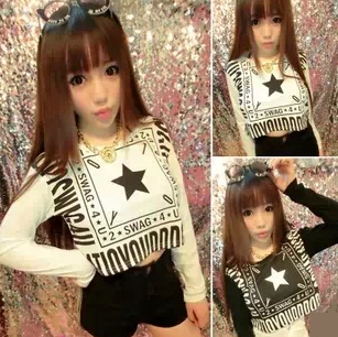 衣服是短款哦!露臍的介意的可以配穿高腰褲