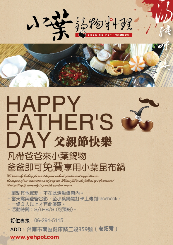 凡帶爸爸來小葉鍋物,爸爸即可免費享用小葉昆布鍋