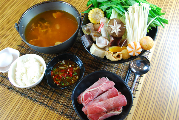 小葉香味泡菜鍋 (內容物:白飯、蛋、菜盤、牛豬肉任選一種)