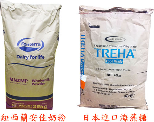 「安佳奶粉」、「紐西蘭進口奶油」及「日本進口海藻糖」