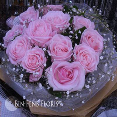 材質(料)說明: 11朵特級粉玫瑰、滿天心.裝飾品