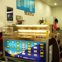 小豆豆是由一對夫婦成立的小而美的八寶冰店,老闆和老闆娘都非常的年輕,也超級親切,店裡佈置也很溫馨,在店裡吃冰的感覺會讓人覺得非常輕鬆,而老闆的技術是由前台糖服務的老阿媽傳授的,經由老闆改良後的紅豆酵母冰是店裡的主要招牌。