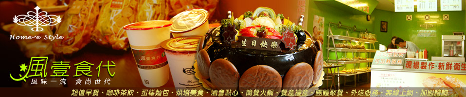 目前店內提供的服務項目有超值早餐、咖啡茶飲、蛋糕麵包、烘培美食、酒會點心、簡餐火鍋、餐盒禮盒、團體聚餐、外送服務、無線上網、加盟諮詢等….。感謝府城人30多年來的支持與愛護,風壹食代將本著風味、健康、超值的品牌理念,繼續和大家一同成長,永續經營!