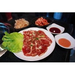 老闆真的相當大方,醃製豬梅花切片可清楚看見大約有2公分厚度呢!!店家也會精心挑選油花漂亮的肉品,這樣顧客烤起來才不易燒焦讓肉變得堅韌。此外,醃漬豬梅花可搭配店家自製的洋蔥絲、泡菜和生菜包起來食用,沾一點特調的水果醬或味噌醬,豪邁的放入口中,這是道地的韓國燒肉吃法~