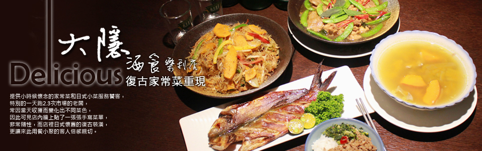 隱身於巷弄之中的大隱,沒有顯眼的招牌或是華麗的裝潢,但卻有獨特的迷人之處。簡約的復古佈置,提供懷舊家常菜。老闆用心料理每道餐點,並堅持原味、原香、原色呈現菜色之優點,因此吸引不少饕客來此用餐。