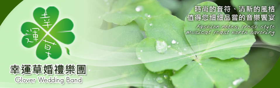 幸運草婚禮樂團,提供專業樂師`現場演奏`活動主持`活動規劃給您平價`高質感`年輕的浪漫氣氛,樂師種類更有:小提琴`大提琴`長笛`薩克斯風`吉他`主唱...等多樣化的選擇曲風:巴薩諾瓦`藍調`古典`西洋經典`國台語老歌`流行現代...等等不但給您的賓客有個特別的歡樂時光,也幫了很多新人在籌備婚禮時,省下很多麻煩唷!!更多優惠訊息