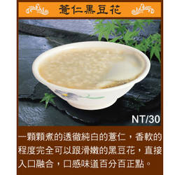 一顆顆煮的透徹純白的薏仁,香軟的程度完全可以跟滑嫩的黑豆花,直接入口融合,口感味道百分百正點。
