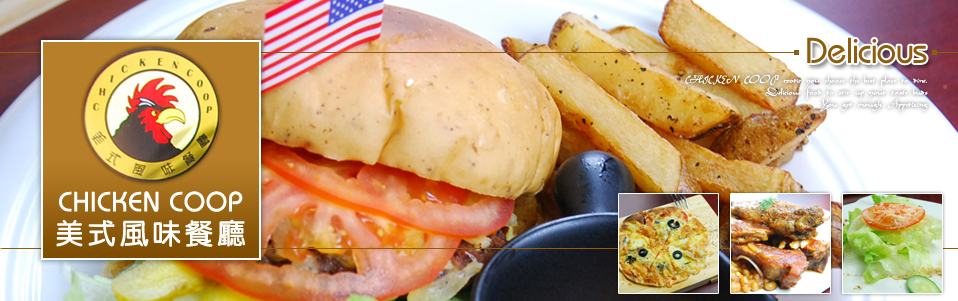 Chicken Coop 美式風味餐廳是融合道地與創意的美式餐廳,義大利麵、紅/白醬燉飯、美式漢堡、各式歐美傳統點心、甜點等等。店內屬於美式的輕鬆風格,帶著些微美式復古氛圍,打造出一個舒服愜意的環境,提供精緻而富有創意的美式料理,