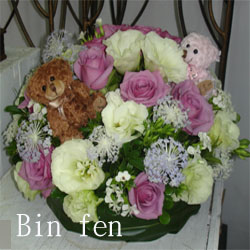 圓形的盆花.素雅的外型.簡單大方的用色使得整體更有浪漫的感覺.
