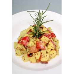 香草、鳳梨片、蘋果丁、西洋芹等,佐以店家自製的特調醬,品嚐起來清脆爽口,果香的韻味在嘴裡繚繞,這道料理深受女性顧客的喜愛。