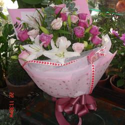 【規格】紫玫瑰.香水百.粉桔梗.葉材..