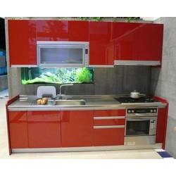 亮紅晶鑽門日式檯面功能廚房