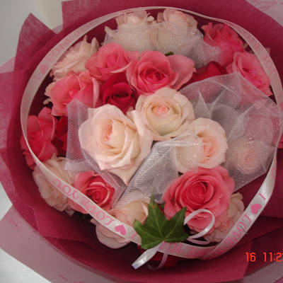 21朵混合玫瑰的代表花語是《最愛》.以塭暖的色系.組合.代表甜蜜綿延長久….