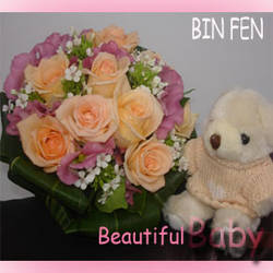 【規格】香檳玫瑰11朵.桔梗.深山櫻